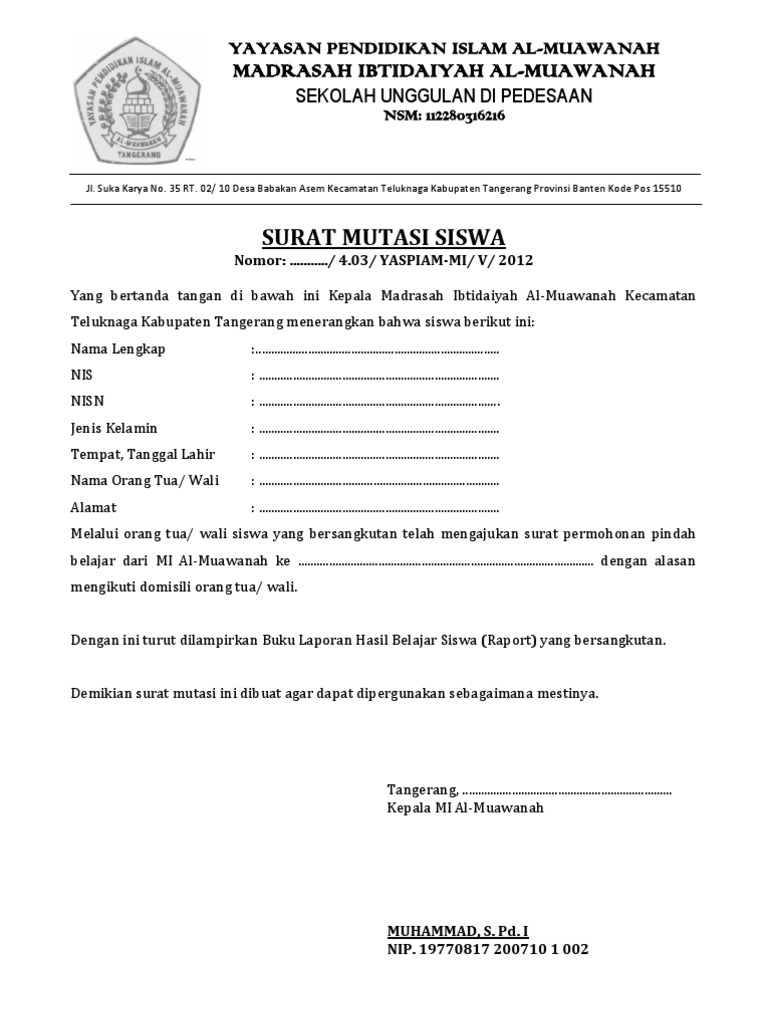 Contoh Surat Pernyataan Batal Mutasi Keanggotaan